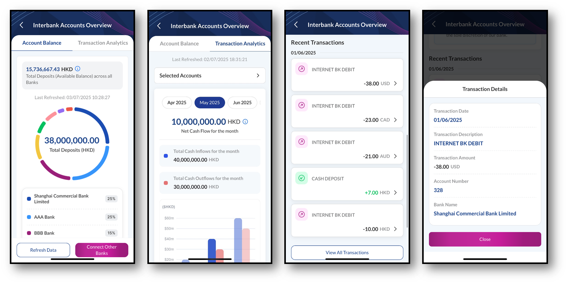 - Interbank Accounts Balance Overview: Once linked via IADS, customers can view account balances across our bank and other banks, gaining a holistic view of their financial status.