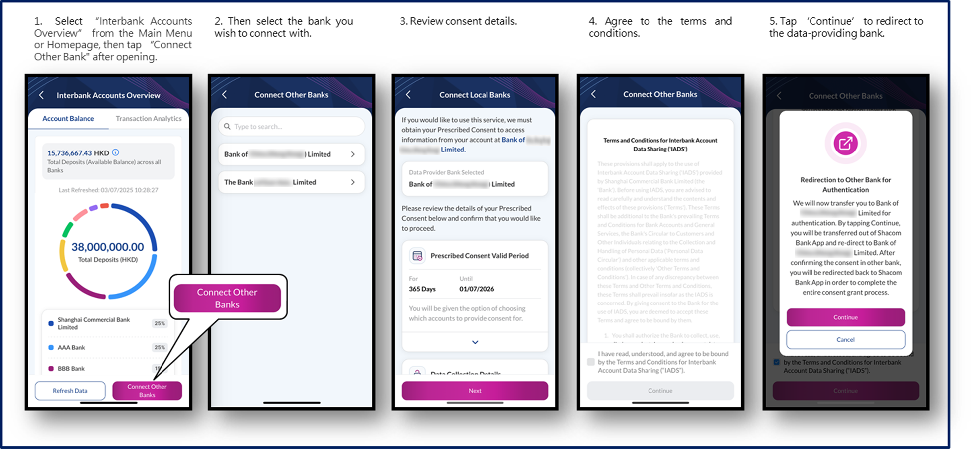 After successfully granting consent, you can view account balances and transaction details from other banks anytime, anywhere, without needing to log into multiple apps. Login to Shacom Bank mobile app now and try the new "Interbank Accounts Overview" service.