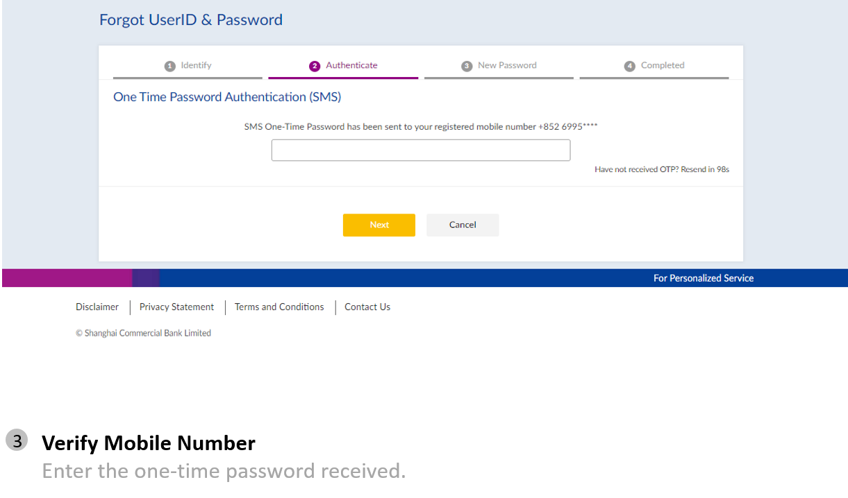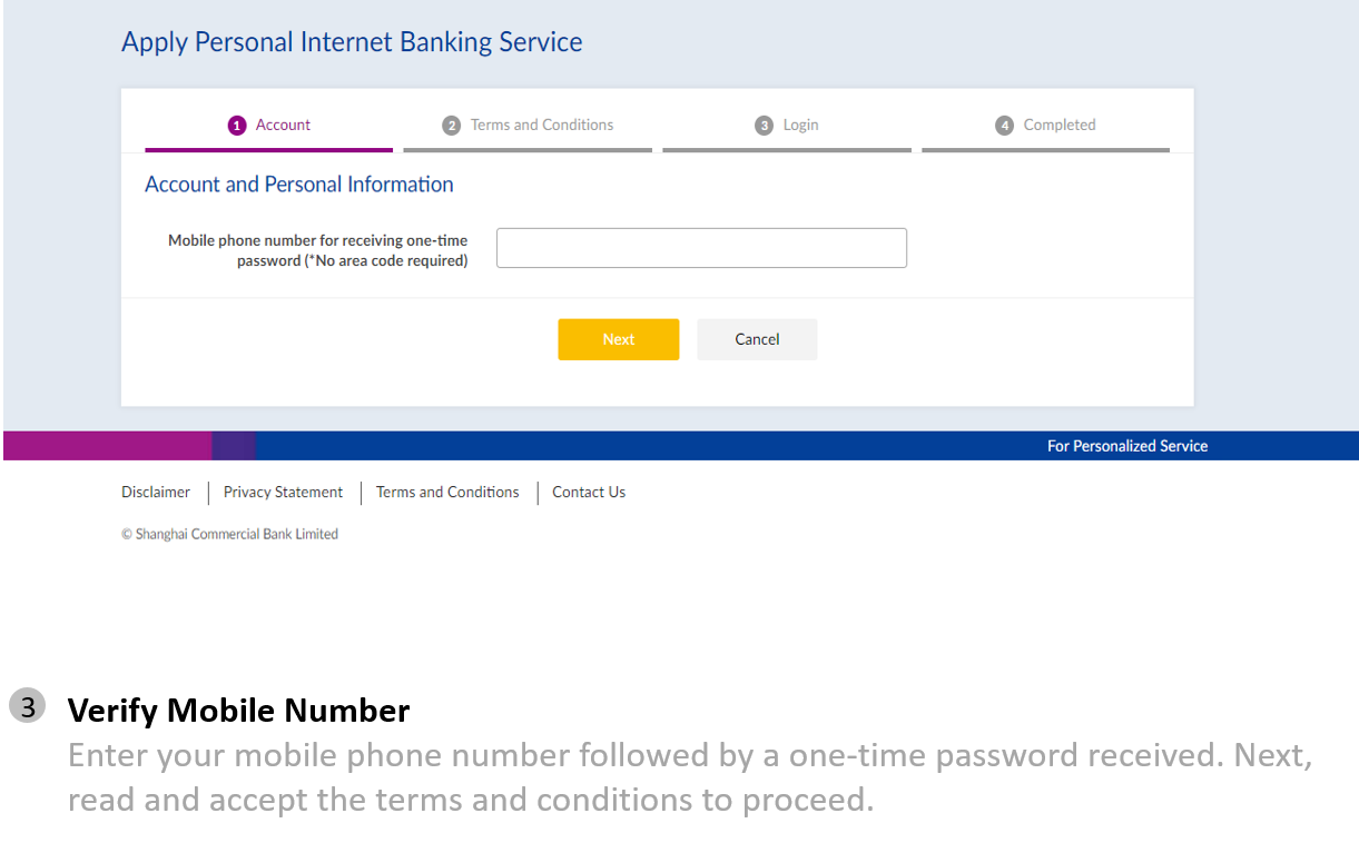 Internet Banking Registration (on mobile website):