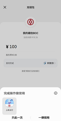 Top-up e-CNY wallet via Faster Payment System in Shacom Pay