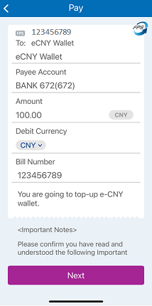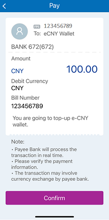 Simple steps to Top-up the e-CNY wallet: