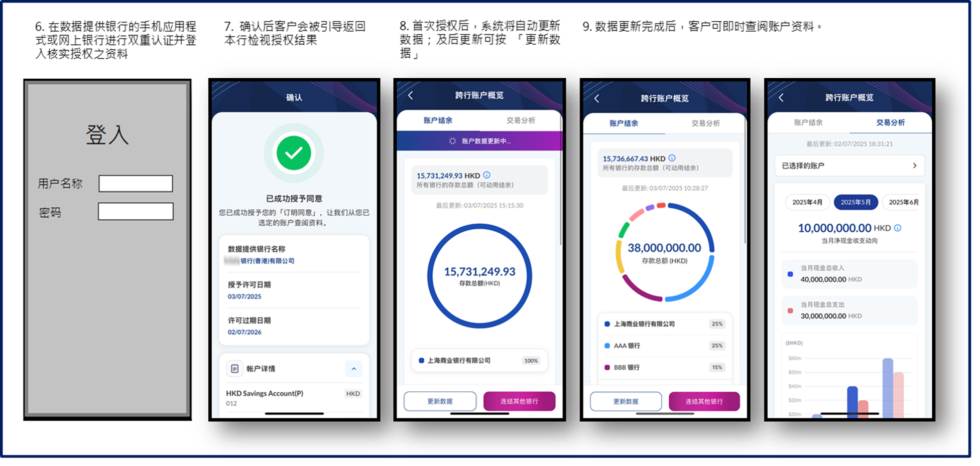 *的实时存款资料,如账户号码、账户结余、交易历史等记录,以及账户资产配置分析 、每月账户资金流分析 ,进一步提升客户体验。