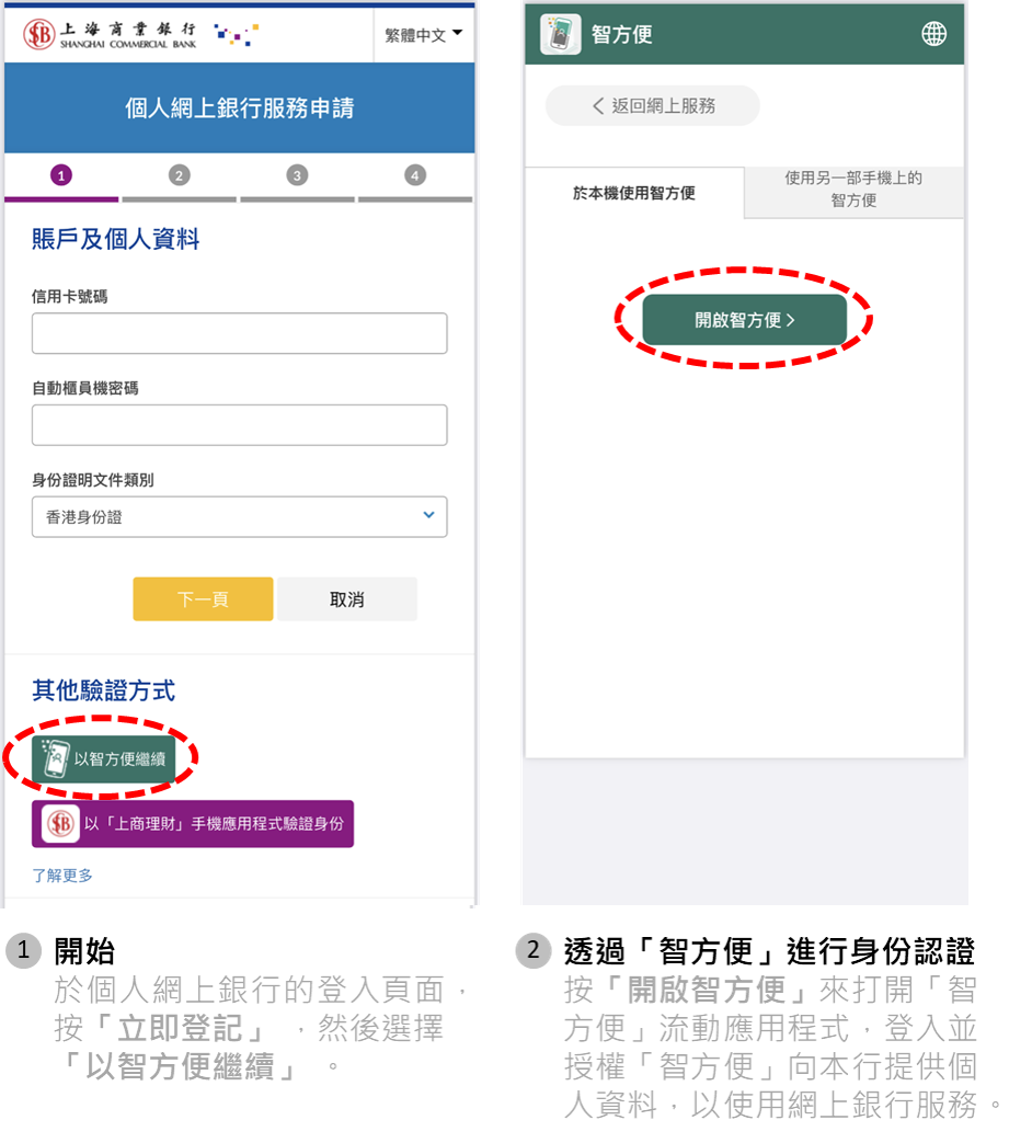 為提升客戶的網上銀行體驗,由2024年3月13日起,本行將推出新功能,讓客戶可以透過「智方便」流動應用程式進行身份認證,快捷地登記網上銀行服務或重設密碼,節省輸入個人資料的時間!